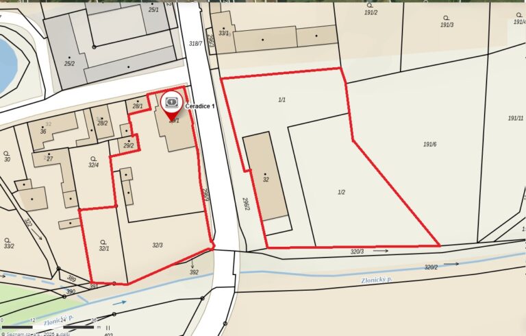 • celková výměra všech parcel: 6.027 m² (2.453 + 3.574 m²)